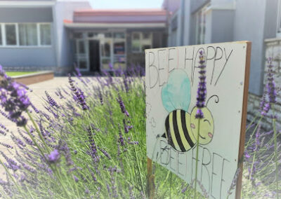 U suradnji s Goethe institutom Njemačkoga kulturnog centra u Zagrebu, u okviru projekta Škole – partneri budućnosti 11. svibnja godine 2009. otvorena je multimedijalna učionica sa svrhom učenja i promicanja njemačkoga jezika i njemačke kulture u svijetu razvijanjem međunarodne suradnje, razmjene učenika, profesora i volontera. Gimnazija Dinka Šimunovića u Sinju organizira programe redovite, izborne, fakultativne i dodatne nastave te organizira besplatne ispite „Fit in Deutch1“ i „Fit in Deutch 2“ s certifikatom priznatim diljem svijeta. Ispite provodi predstavnik Goethe-instituta. Goethe institut u Hrvatskoj nastavnicima i profesorima njemačkoga jezika omogućuje metodičko i didaktičko usavršavanje, priređuje različite oblike savjetovanja, osigurava stipendije za njih i za najbolje učenike i podmiruje troškove njihova boravka na Goethe-institutima u Njemačkoj. Nastava u Gimnaziji Dinka Šimunovića u Sinju odvija se u školskoj prizemnoj zgradi u ulici Dinka Šimunovića br. 10. Zgrada se sastoji od dvaju ’paviljonskih krila’ izgrađenih 1958. i 1962. godine, a povezanih ostakljenim hodnikom, zatim predvorja, zbornice, knjižnice, univerzalnih i dviju specijaliziranih učionica, upravnih ureda, hodnika i sanitarnih prostorija. Škola je obnovljena tijekom 2003. i 2004. godine sredstvima Županije Splitsko-dalmatinske.